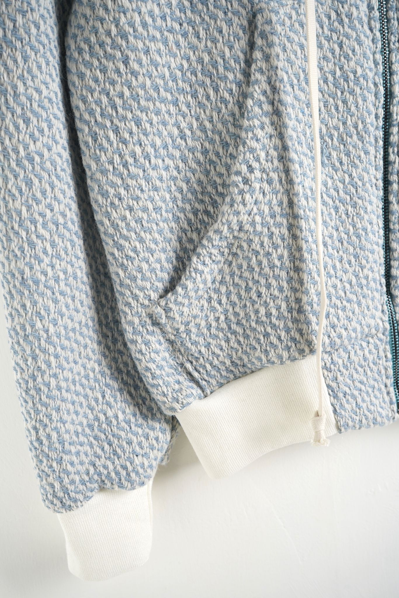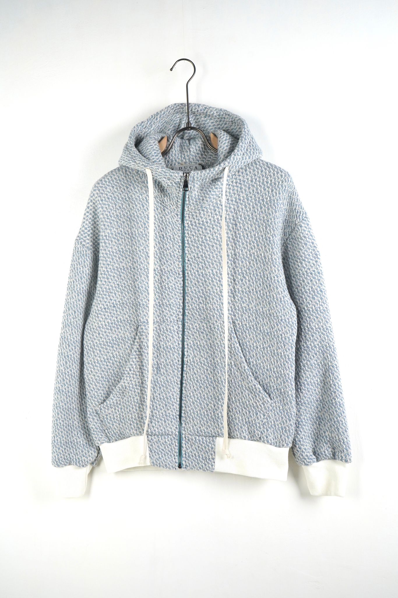 Designul include un model vizual pe piept sau spate, iar șireturile lungi permit ajustarea taliei sau glugii, adăugând un detaliu modern și funcțional. Croiala regular fit și fermoarul frontal asigură libertate de mișcare și control ușor al temperaturii. Culoarea crem îl face versatil și ușor de asortat cu pantaloni sau treninguri.