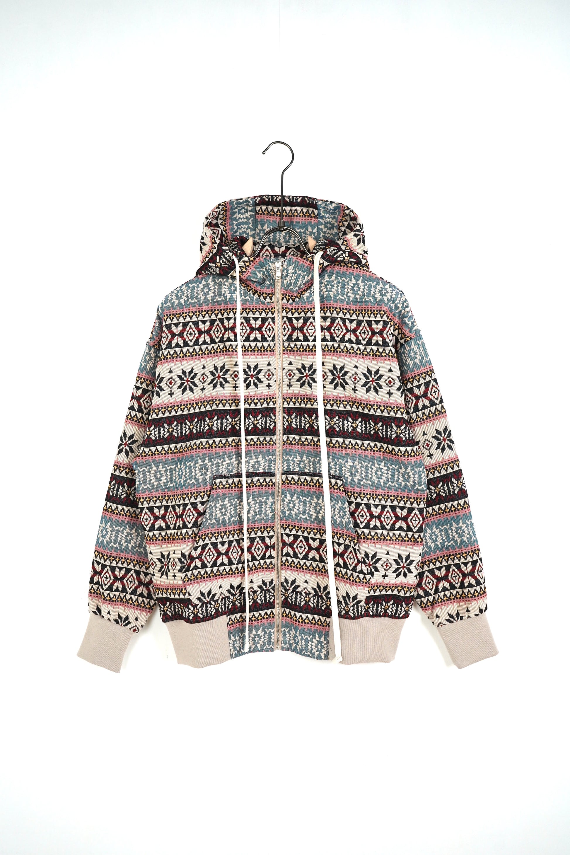 Adu un plus de culoare garderobei tale de iarna cu acest hanorac cu model nordic. Imprimeul multicolor ofera un aspect vesel si modern, perfect pentru sezonul rece. Datorita compozitiei bogate in fibre sintetice, materialul este rezistent in timp, isi pastreaza culorile vii dupa spalare si ofera un confort termic sporit.